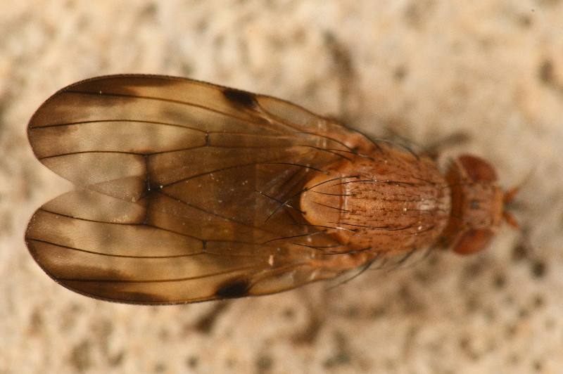 Mésopleuron avec seulement deux soies dirigées ventralement, front terne = Minettia. Marge antérieure de l'aile assombrie, longueur des cils de l'arista supérieure à la moitié de la largeur du troisième article antennaire, tête et thorax jaune, assombrissement sur dm-cu = M. inusta d'après la clé des Lauxaniidae page 60 https://www.zobodat.at/pdf/ENT_0025_0041-0080.pdf