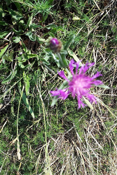 Remarque : - Plante dressée, glabre - feuilles lancéolées, les caulinaires sessiles entières, les inférieures pétiolées - involucre large (1,5 cm) , à folioles surmontés d'un appendice peu concave, irrégulièrement lacéré-frangé et cachées par les appendices - fleurs purpurines, les extérieures rayonnantes. -en bordure de champ de blé
