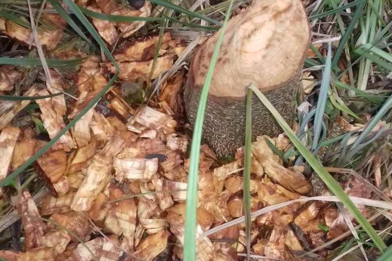 Remarque : traces de présence d'un castor: plusieurs arbres rongés et coupés (voir photo)