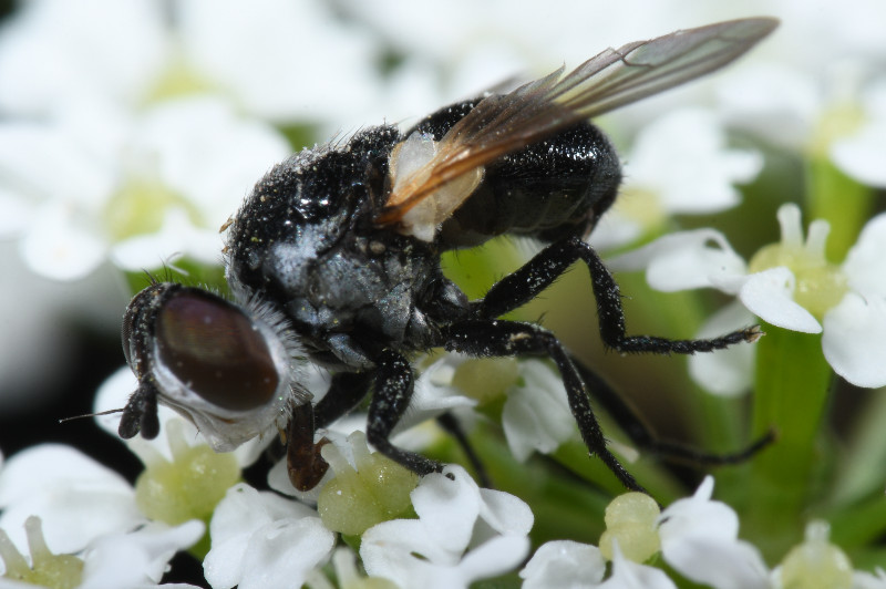 Trompe épaisse, yeux nus, cellule alaire R5 pétiolée, front moitié moins large que l’œil, abdomen bombé, scutellum avec deux paires de poils, antennes deux fois moins longues que la tête, une femelle d'après la clé des Tachinidae d'Europe centrale https://quelestcetanimal-lagalerie.com/wp-content/uploads/2016/10/cle%CC%81-des-tachinidae-Europe-Centrale.pdf
